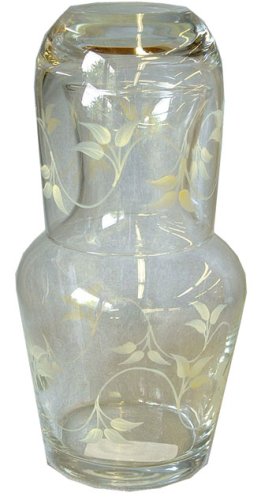 Hand Painted Glassware Cream Leaves Design - Bedside Carafe Set