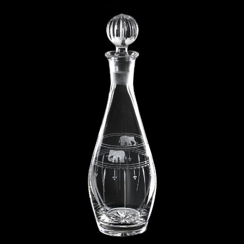 Grehom Crystal Glass Carafe - Elephants & Olives; Beautiful Gift; Hand Etched Carafe; Mouth Blown Crystal Glasses