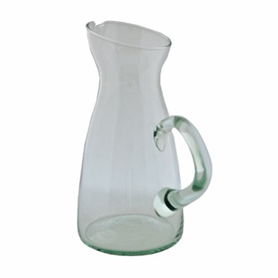 Grehom Recycled Glass Jug - Open Carafe; Hand made Recycled Glassware; Made in Spain; Beautiful Gift delivered with handprinted cotton serviette
