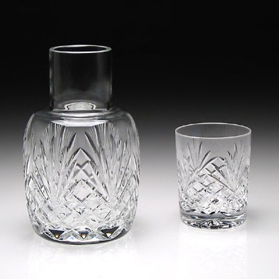 A traditional hand cut lead crystal carafe and tumbler ideal for the bedside table or in a guest room.