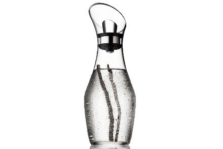 Menu 1 Litre Water Carafe / Wine Decanter - Designer Jakob Munk's elegant decanter is a part of Menu's wine accessories series, Vignon. The decanter is versatile, and can be used for both wine and water. With its slender form, it can be placed on refrigerator door shelves, and the tight-fitting solid glass stopper ensures that water does not acquire taste from the refrigerator. The decanter is large enough to use for wine aeration, and the slanted funnel-formed opening makes it easy to pour from wine bottle to decanter.