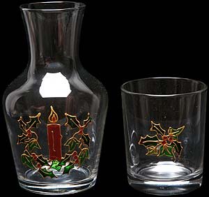 Water Set comprising carafe and glass in a Celtic Christmas Design. Hand painted and designed in the UK by Beverley Gallagher, these significant and expressive gifts are ideal for Christmas gifts, presents and celebrations and you can link this item to our complete range of these products to create your very own Celtic Christmas celebrations.